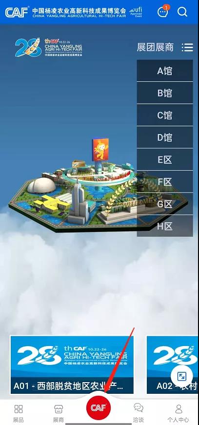 点击农高会APP底部CAF按键即可进入杨凌农高会云上展览展示空间,通过3D上翻或3D虚拟建模技术构建,用图片、视频、展商直播等方式让参会群众身临其境,为观众提供沉浸式体验。