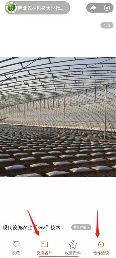 在各展品、展商、和展团的详细页内,点击交换名片,即可在线进行线上合作洽谈。
