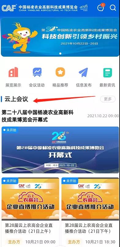 在农高会APP云上会议版块,可以通过手机直播收看本次农高会相关活动直播,也可以提前进行预约,在活动开始前15分钟收到直播推送。