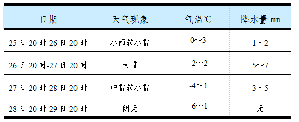 预计我区1月25日夜间至28日有较强降雪天气过程,主要降雪时段集中在26日夜间至27日夜间,量级为大雪,28日夜间雪停转阴。期间,可能出现能见度小于500米的大雾。具体预报如下: