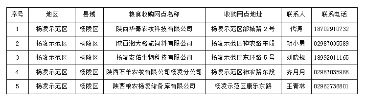 为进一步规范秋粮收购市场,维护种粮农民合法权益,营造公平竞争的市场环境,杨陵区粮食局对我辖区粮油企业秋粮收购活动开展监督检查,现将核查的秋粮收购点公示如下: