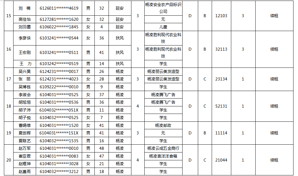 杨凌示范区公租房申请续租人员名单-201801