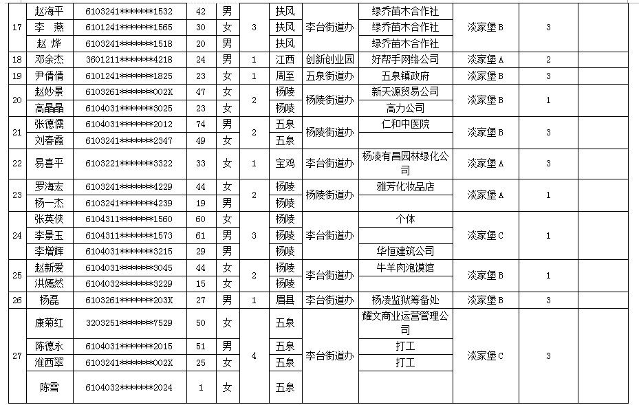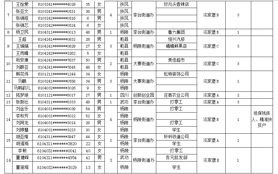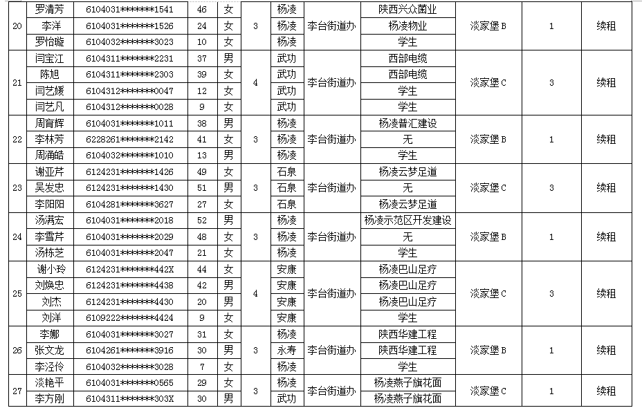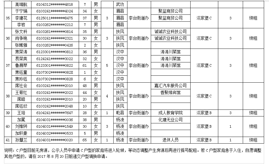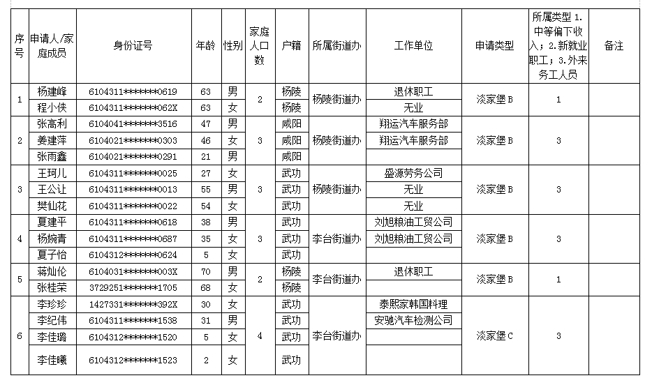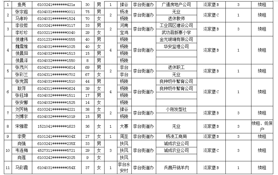 杨凌示范区公租房申请人员名单-201718
