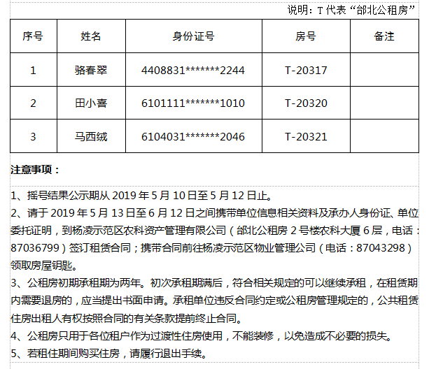 杨凌华夏联诚果业有限公司申请公租房配租结果公示-201904