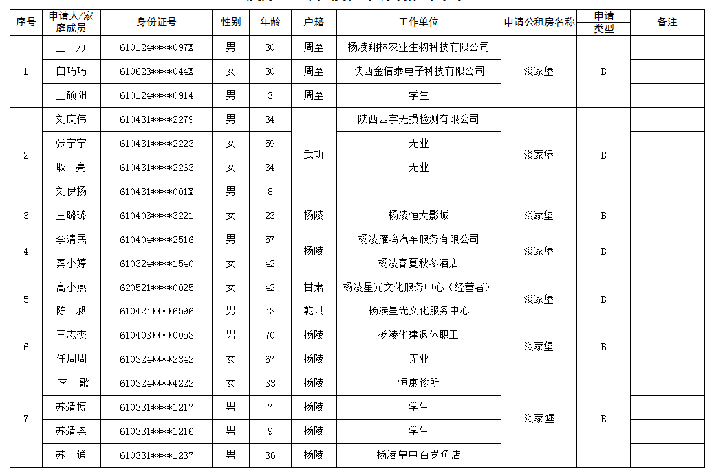 杨凌示范区公租房申请人员名单-201909