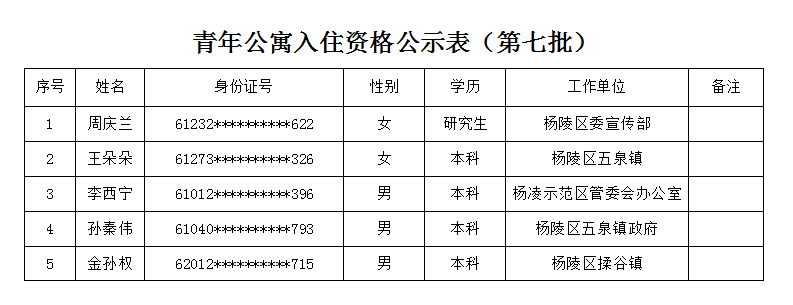 附件:杨凌青年公寓入住资格公示表-第七批