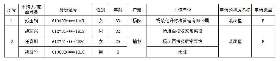 杨凌示范区公租房申请人员名单-201910