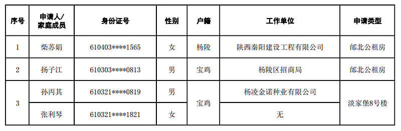 杨凌示范区公租房申请人员名单-202112