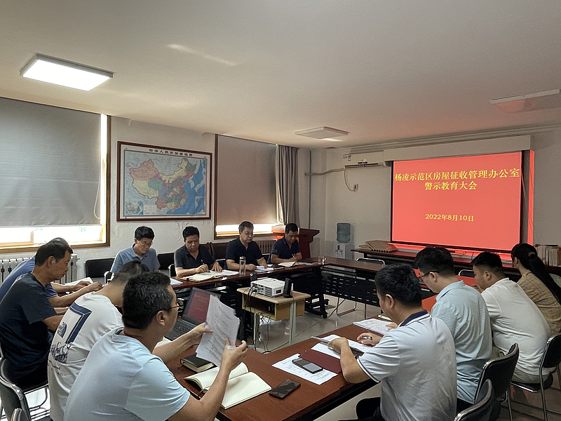 2022年8月10日,杨凌示范区房屋征收管理办公室组织召开纪律教育学习专题会,会议由示范区房征办党组书记、主任李永东同志主持,全办工作人员参加。